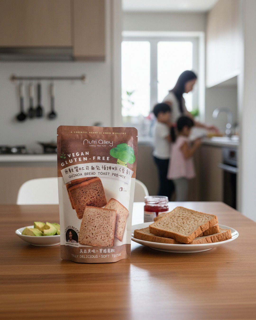 只需按照包裝背面的食譜,讓你輕鬆製作無麩質純素麵包!不需使用雞蛋和牛奶!